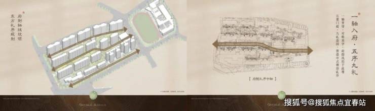 ①【板式楼栋】2.93低密府院大宅,一字板式楼栋布局,户户朝南,风光俱佳。一轴入府,以礼制中轴对称规制院落布局,尽显府院的东方美学