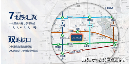 三地铁交汇地铁物业,0距离燕南地铁口(2号线燕南站),约400米到1号线/6号线科学馆站,片区800米内汇集1、2、3、6、7、9、11号七条地铁线,50多个地铁站口。