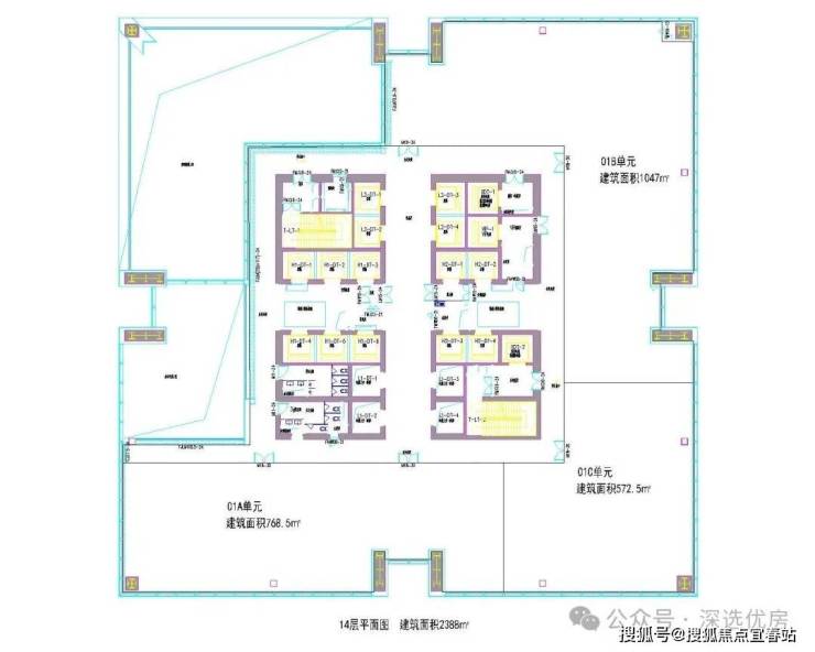 【租赁推荐方案】14楼01B单元,建筑面积1047㎡