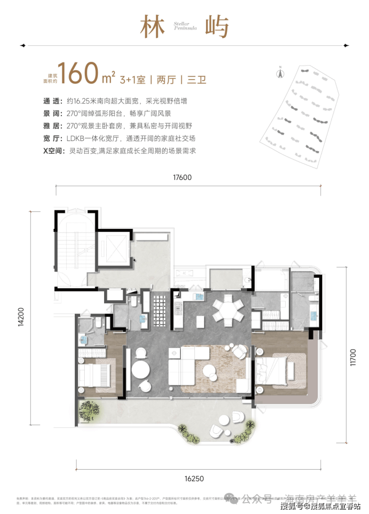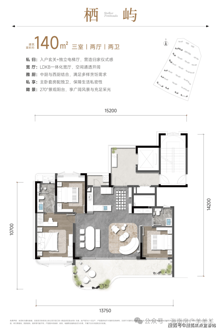海棠湾罕见“半岛”地形,海棠河如玉带环绕地块,亲海近河、林园簇拥,天然形成“藏风聚气、纳水旺财”的绝佳风水格局,是高端居所难求的天赋基底,为居者纳藏福气与财运。