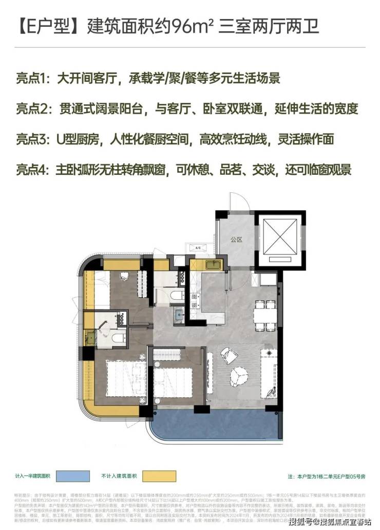 270°弧形无柱大尺度飘窗、大宽厅、大阳台,带来更多使用空间。