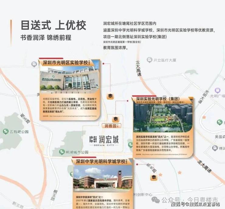 教育配套:项目自带18班幼儿园,周边规划有3所九年一贯制学校,其中光明扛把子,深圳实验学校分校仅一路之隔,周边还有深圳中学光明科学城学校。是整个深圳都非常稀缺的双一流名校学区房。
