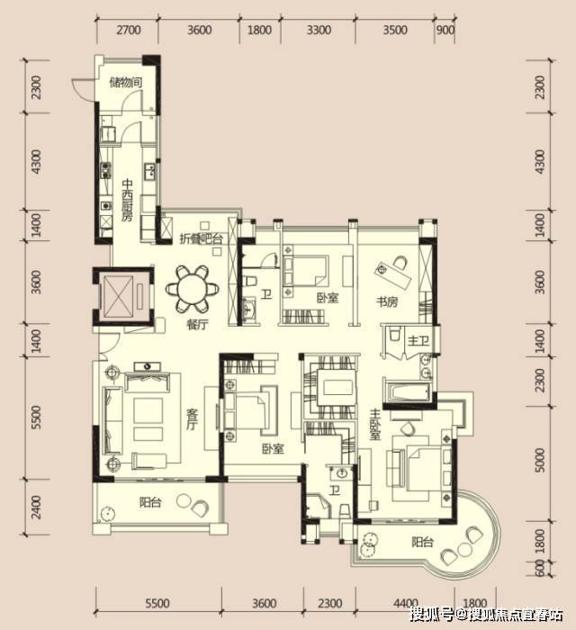 敞亮三卫双阳台,藏风纳景之余,起居更方便