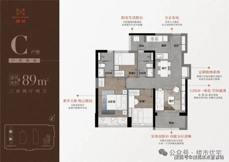 89㎡三房二卫A/B户型,位于1栋🔝珺悦名都营销中心电话:400-865-1207(可直接咨询房源动态、活动详情)一单元,两开间阳台,主卧都有双面凸窗赠送。