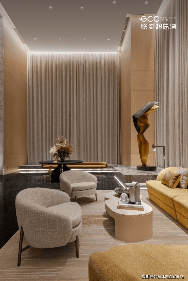 联泰超总湾的公区设计,由全球顶尖设计团队 Yabu Pushelberg(雅布) 领衔,以 “与海共生” 为核心理念,将湿地生态与滨海美学融入空间肌理,构建沉浸式的归家礼序。
