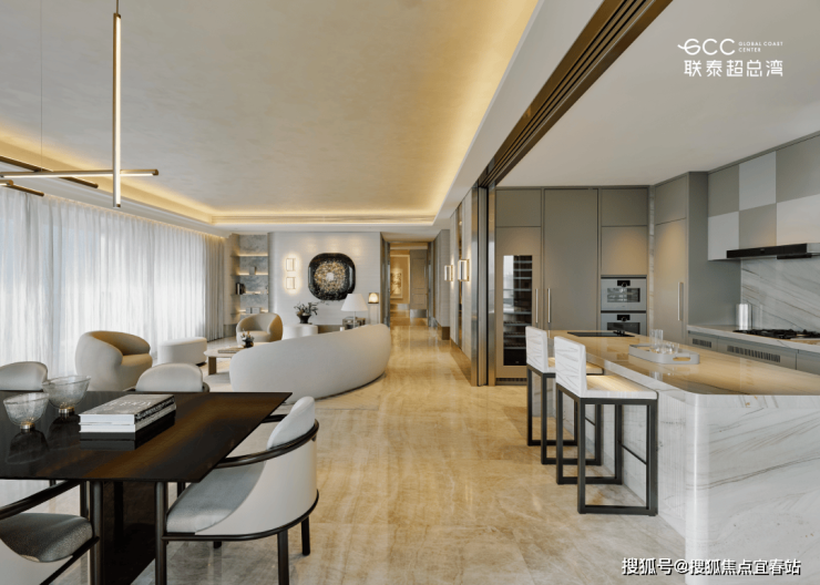 304㎡ 2+1 房 3 卫:入门即奢,LKD 横厅的海景主场