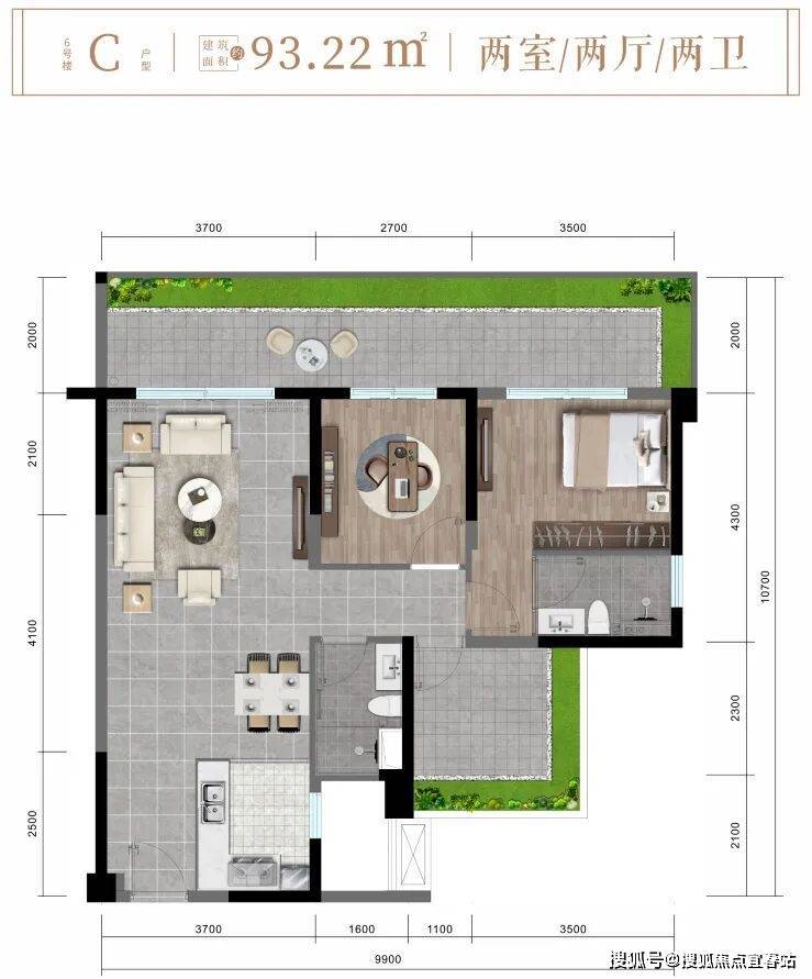 ✨ 6楼C户型约93㎡舒阔两房两厅两卫