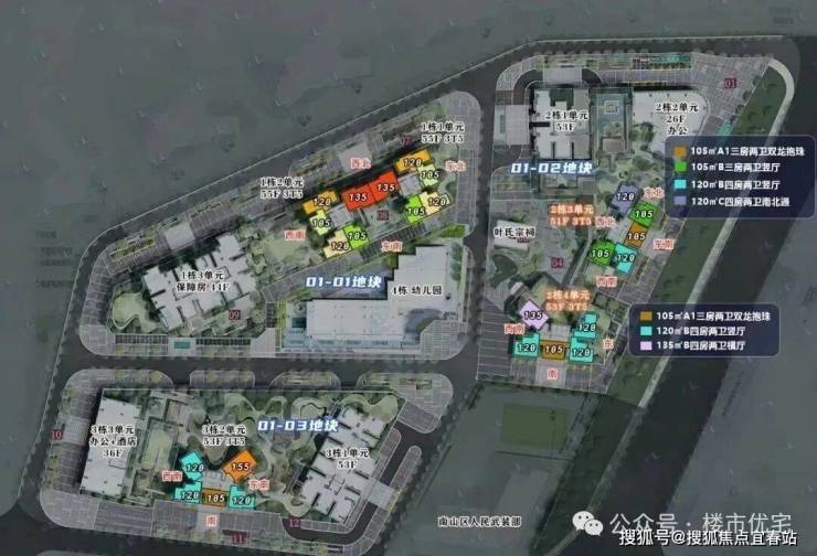 首推02地块,105-120-140㎡的3-4房,精装交付。已按新规调整户型,由原套内80%左右增加到现套内90%。按内部流传实用率将近100%!规划总建面约16万㎡,容积率9.12。规划住宅建面约8.37万㎡,商业建面约1万㎡,办公面积约1.7㎡。