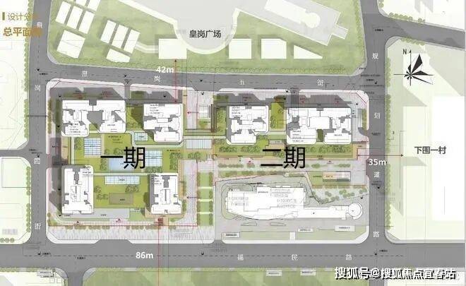 其中一期占地面积为31428.9㎡,计容建筑面积174082.2㎡,容积率5.54,共五个单元塔楼,其中一至四单元为回迁住宅,总面积101500㎡,五单元为一期唯一可售住宅,总建筑面积30807.64㎡,商业41503.6㎡,停车位1266辆。二期为三个单元可售住宅,住宅总建筑面积约7万/㎡。