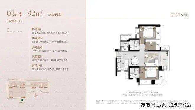 据悉,卓越缦悦规划有6栋住宅与约7万㎡的商业,其中可售住宅约有732套,首推232套面积段为92-173㎡的3-5房。除了新规超高使用率,户型还奢配独创弹性方厅、环幕尊奢主卧、极致三面采光、多飘窗+设备平台等7大顶配豪宅体系。