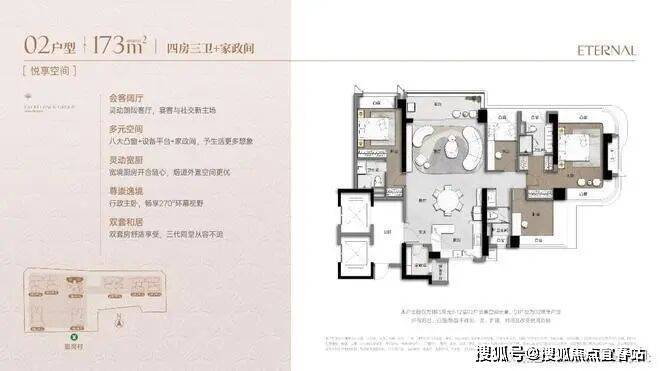 • 「户型面积:」 建面约91 - 173㎡ 3 - 4房,少量257㎡大户型