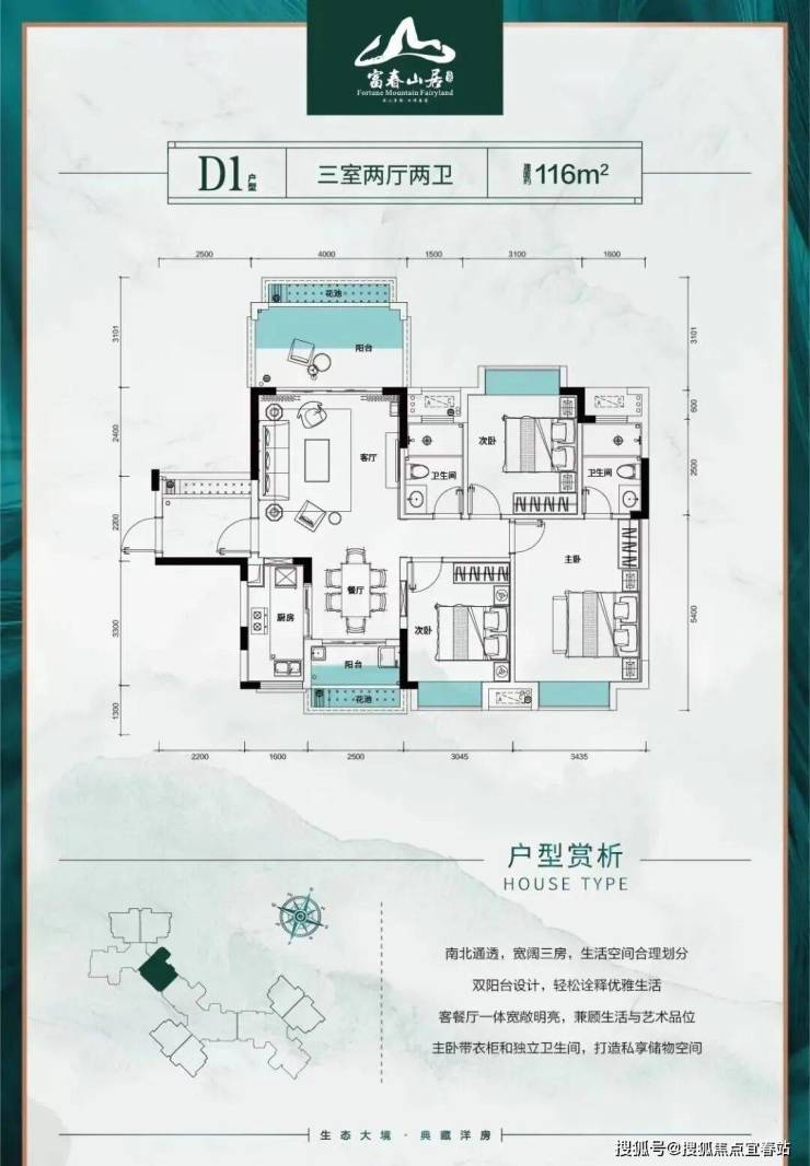 建面约105-116 m² 南北通透三房