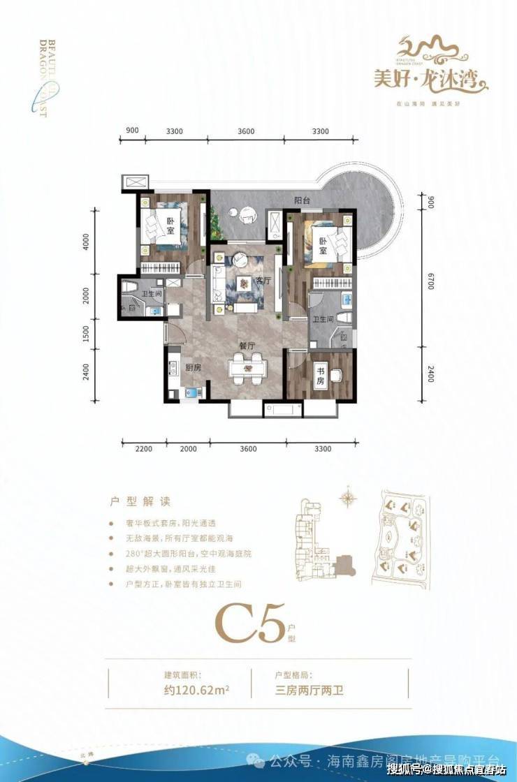 ④ 三房户型三面采光,空间方正合理,双独立明卫,270°环型瞰海阳台