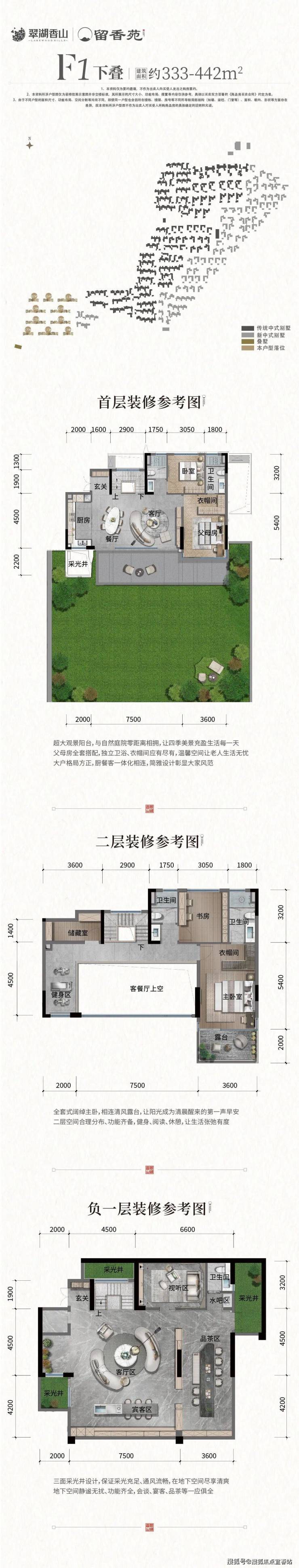 ▌ 下叠:庭院墅,建筑面积约333-442㎡