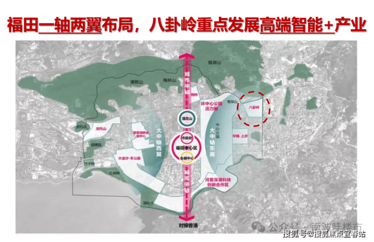 景观资源——俯瞰银湖山、笔架山公园生态景观、拥福田、罗湖CBD城市中轴景观