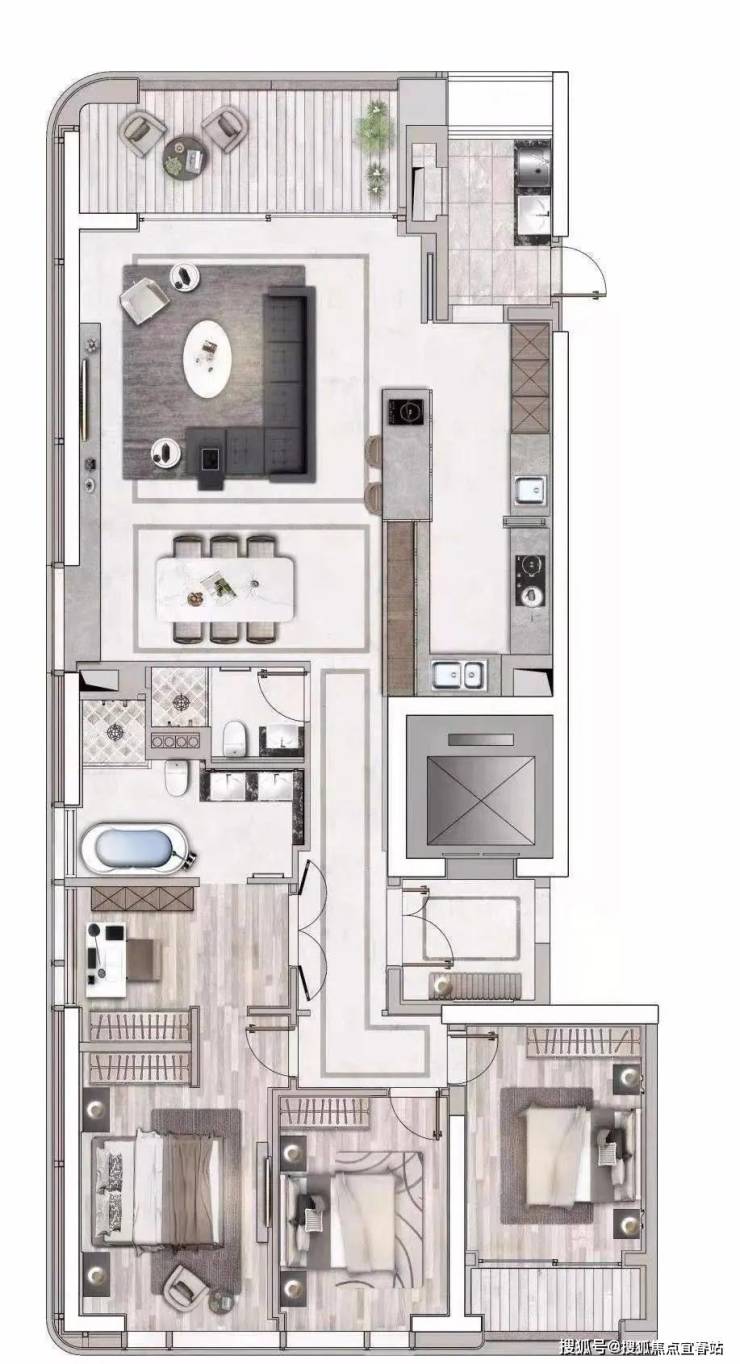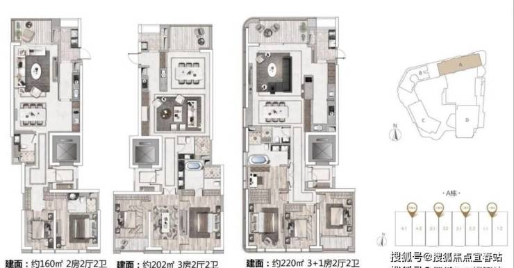 A栋产品:160-200-220㎡ 2-3+1房云端美寓