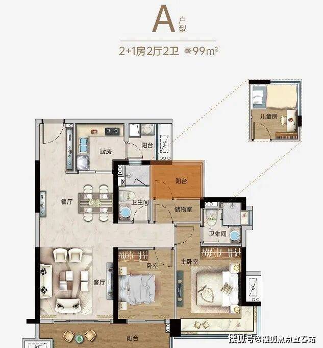 【建面约99㎡舒适三房】约6米大阳台 I 高配入户花园 I 干湿分离 I 南北通透