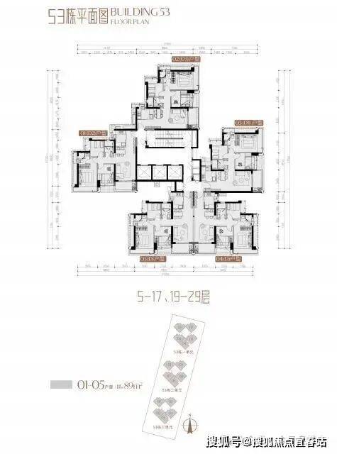 5-2地块(尊府2)为53栋三个单元,3T5,约516套,面积段为约89-190㎡的3-4房。