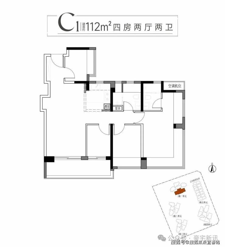 三:建面约112平方C1户型四房两厅两卫