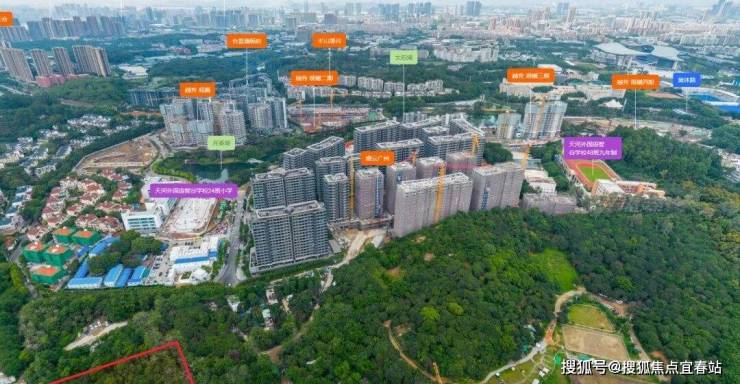 项目自身配建6班幼儿园,中小学由天河外国语智谷学校(已开学)统筹解决
