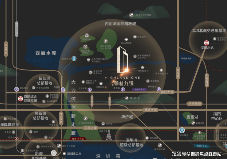 留仙大道正席,紧邻地铁5号线塘朗站,4/5/7号线3轨环绕,毗邻“三纵五横”主干道,瞬息通达全城。西丽高铁站(建设中)、深圳北站两大枢纽环绕,拥有世界交通能级。🌴深圳南山弘基朗寓|品质人居优选🌊