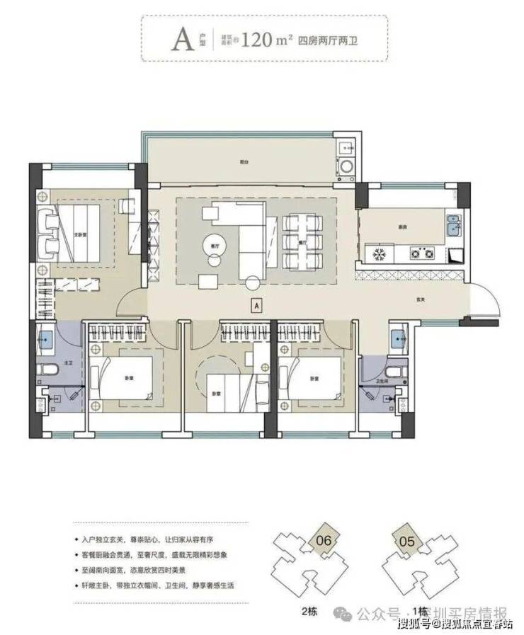 120平四房两卫 折后总价 840-990万(东南&西南) 6套