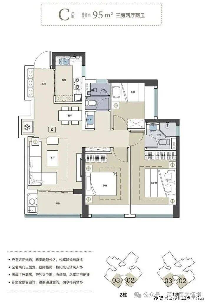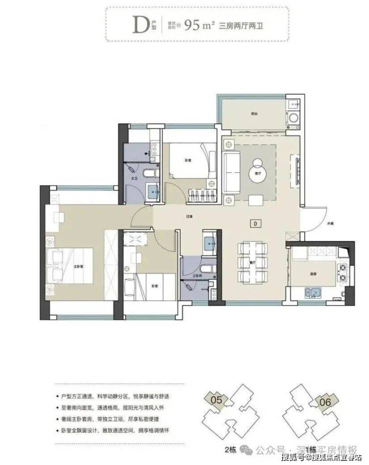 95平三房两卫(竖厅)折后总价590-640万