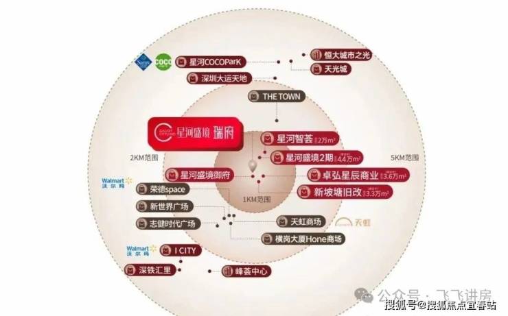🏛约5公里范围:尽揽百万㎡商圈,星河COCOPark(龙岗山姆会员店)、大运天地、恒大城市之光、天光城等知名商业体环伺,畅享都市繁华便利。