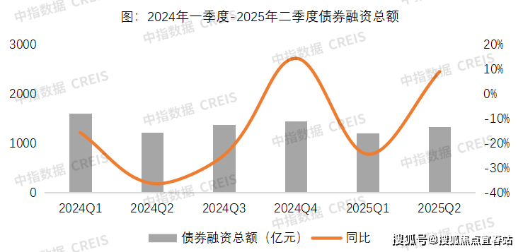 2025年上半年融资政策持续宽松,但债券融资规模仍在下降通道,市场复苏的不确定性和分化增加了投资人对房地产行业的疑虑,也使得企业对新增融资采取谨慎态度,融资规模仍在缩减中,降幅有所收窄。