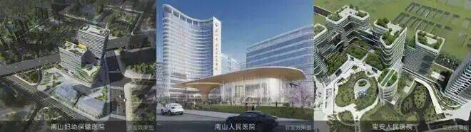 约3KM范围内:南山区人民医院(三甲)、南山区中医院(在建中)、宝安中医院(三甲)等覆盖多家优质医疗机构