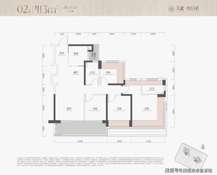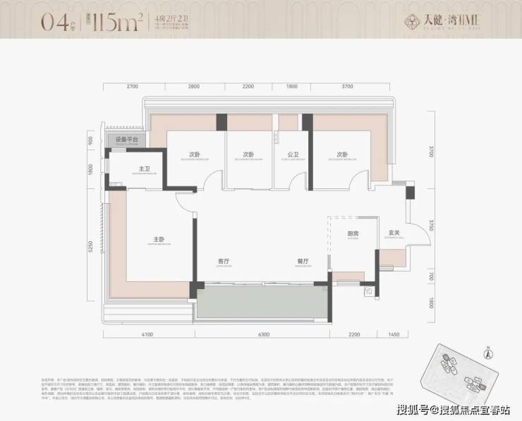 115㎡4房2卫:大横厅户型,朝南看海,使用率很高,但三个次卧朝北