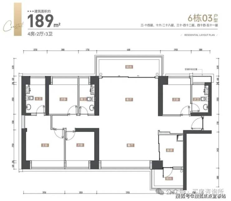 超16米东南采光面,阳台超7米宽;主卧进深4.5米,L型飘窗可270度景观。