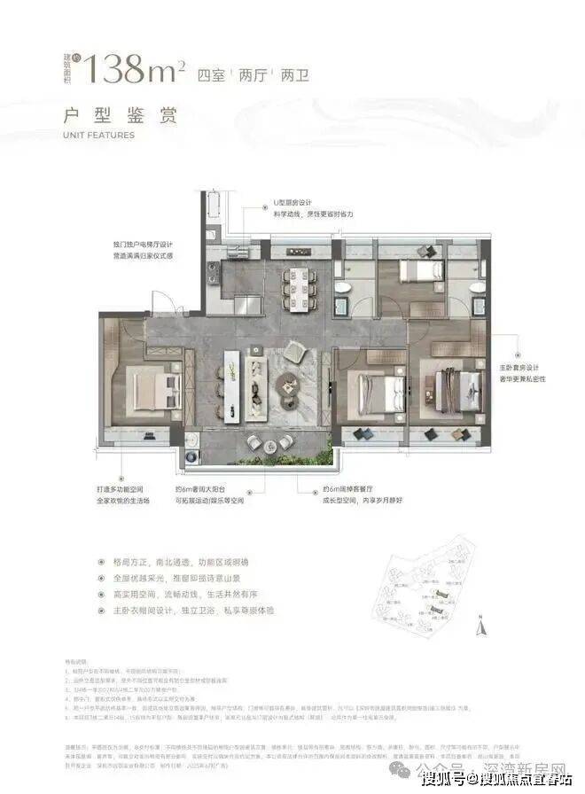 · 全屋270°飘窗环绕,加上私属电梯厅,大大增强了收纳空间及整体高实用率,可以媲美200平+奢宅格局;
