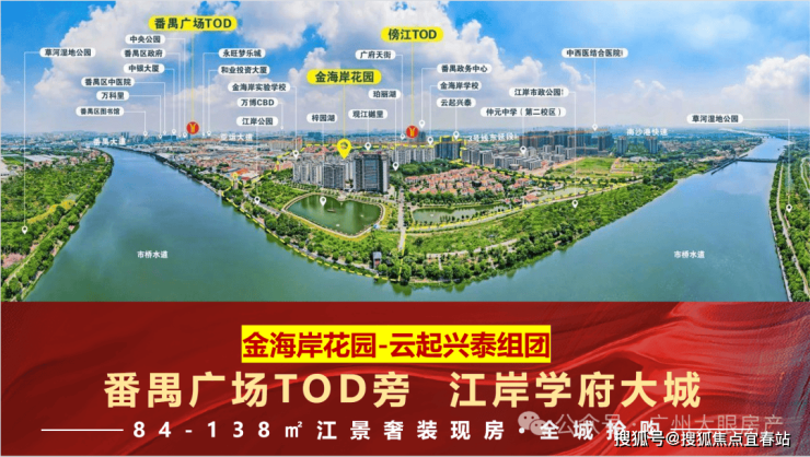 同时它也坐落于番禺仲元学府圈,是一座集交通、教育、商业、生态等多重优势于一体的TOD江岸大城。