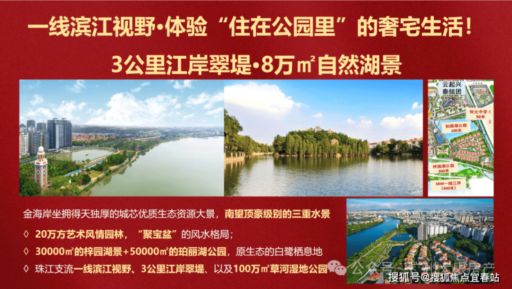 金海岸花园拥有延绵3公里江岸翠堤,一线头排无敌江景视野,极目100万平米湿地公园;拥有繁华都市之心罕见的50000平米珀丽湖公园,以“住在公园里的家”为主题,打造出“中心大湖+江岸3重水景”的景观格局,漫步在社区组团园林里,步步皆景,即使坐在家中,推窗既享受亲园亲水的鲜氧生活!