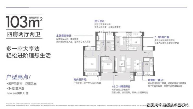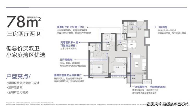 同等面积多出市面上其他产品一个卫生间。从单身到三代同堂,每个家庭阶段都能有舒适的体验