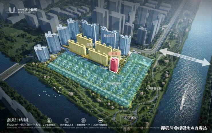屿境处于湾中新城高端组团——原墅小区的中央C位,是唯一一栋17层高的河海景观大平层,极致视野无遮挡,远则可观深中通道与黄金内湾海景,近则坐拥宽达250-280米的水系公园。