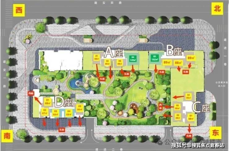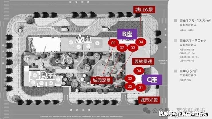 玖玖颂阁占地约1.4万㎡,建面约10.41万㎡,目前在售89㎡3房/128㎡4房。项目由5栋组成,E座为公租房,A~B-C座2梯4户,D座2梯5户。