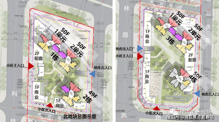 项目总用地面积约28564.79㎡,建筑面积约162340㎡,规定容积率≤6.0,由南北两地块组成,规划4栋150米超高层住宅,其中1栋(1、2单元)、3栋(1、2单元)和4栋为50层,2栋为49层。