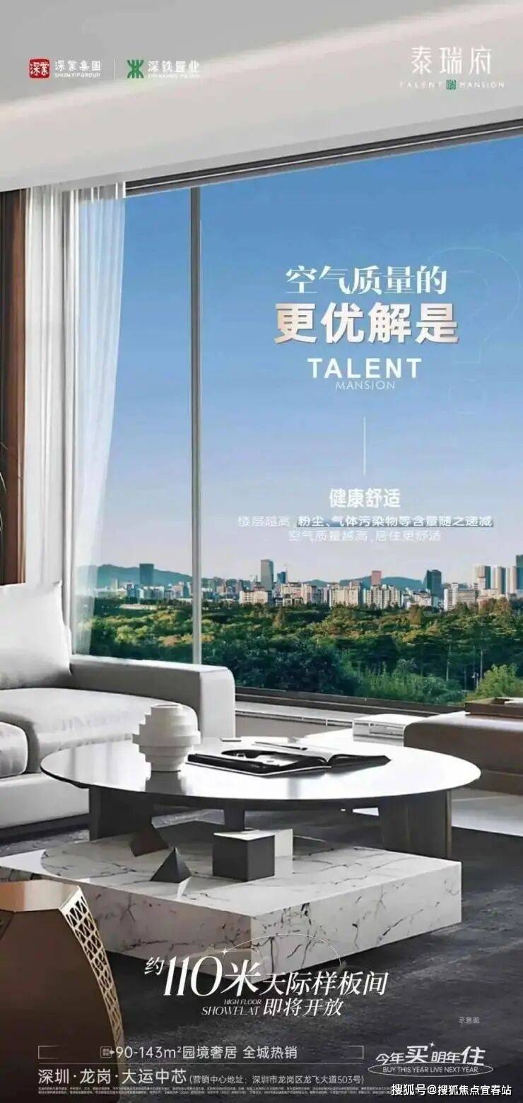 深圳龙岗大运新楼盘——深业泰瑞府已经开盘,加推2/3栋,共508套房源,面积有90㎡的3房1卫,102㎡的3房2卫,115㎡的4房2卫,143㎡的5房2卫户型,备案均价5.2万/㎡,备案单价4.41-5.72万/㎡,总价在412-818万/套,计划在2026年4月份前带简装交房。