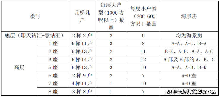 大户型单位(1000尺以上)约占30%,都可以享受开阔的海景视野,以三房双套房户型及四房为主。