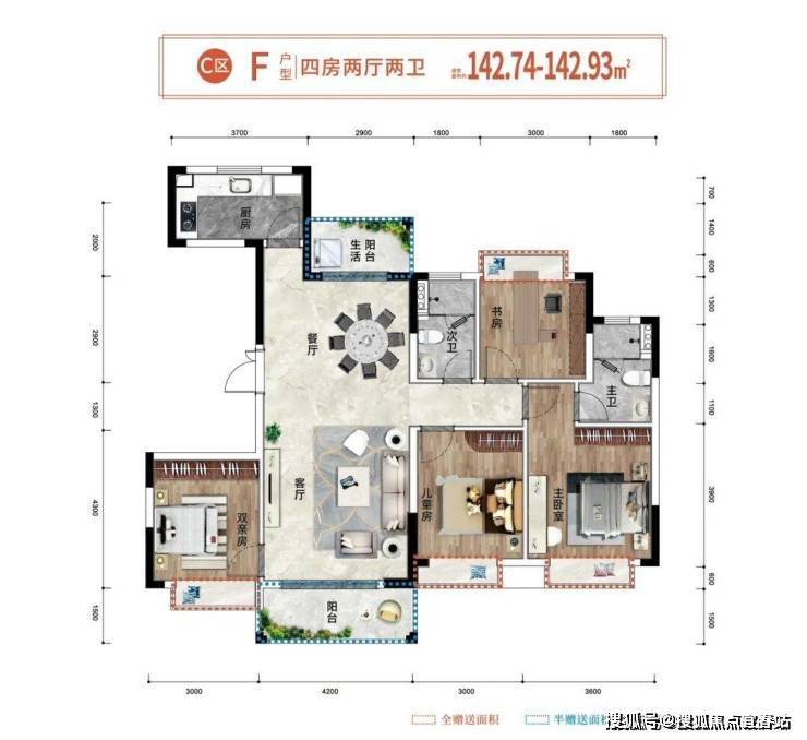 🔹奢阔四室,均带飘窗,珍藏三代同堂幸福时光