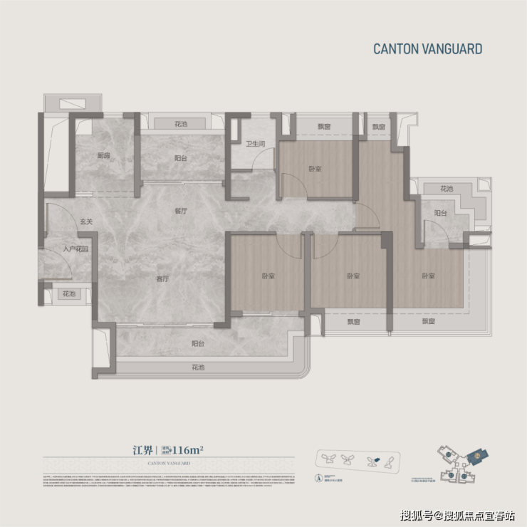 建面116㎡的4空间2厅2卫,南北通透,灵动宽厅,带独立入户玄关,双L型景观面,拥有双面宽巨幕瞰江阳台。