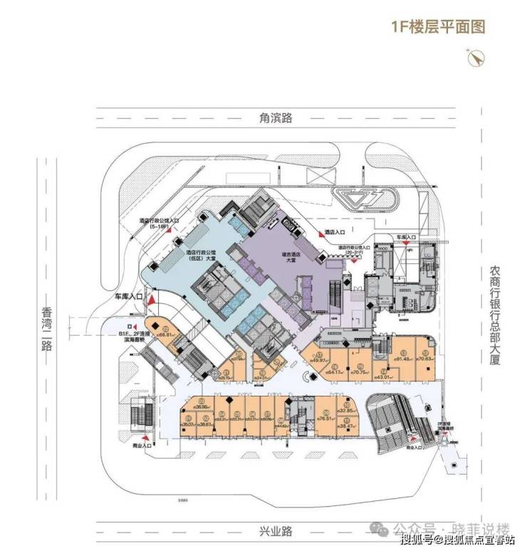 临主干道兴业路,临街昭示最强,超高实用率可外摆,万能铺可通燃气,瑞湾府双大堂、瑞吉酒店大堂,三大堂必经之地,高端消费客群汇集。