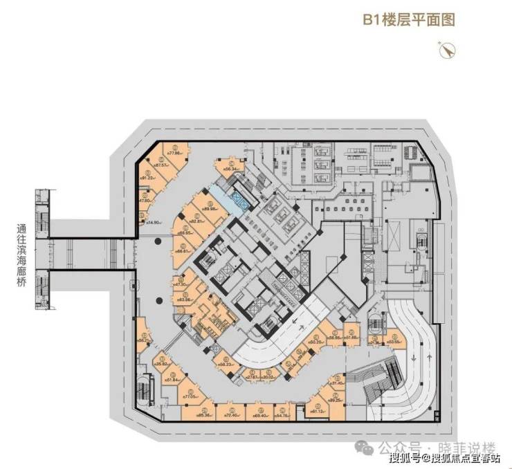 超75%使用率房铺型方正,内部空间使用便利,部分铺位燃气/烟道/上下水一应俱全,可做重餐饮,联通滨海廊桥主桥、支桥,导入欢乐港湾,汇集周边总部企业、地标配套客流。