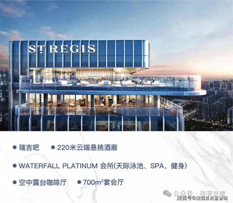 百年奢华瑞吉酒店,源自纽约1904年,从纽约到宝中的“精英400”传承,118年来遵循择址“首善之地”,秉持高水准服务。拥享深圳首个云端悬挑酒廊,于前海湾220米处,俯瞰壮丽景观。