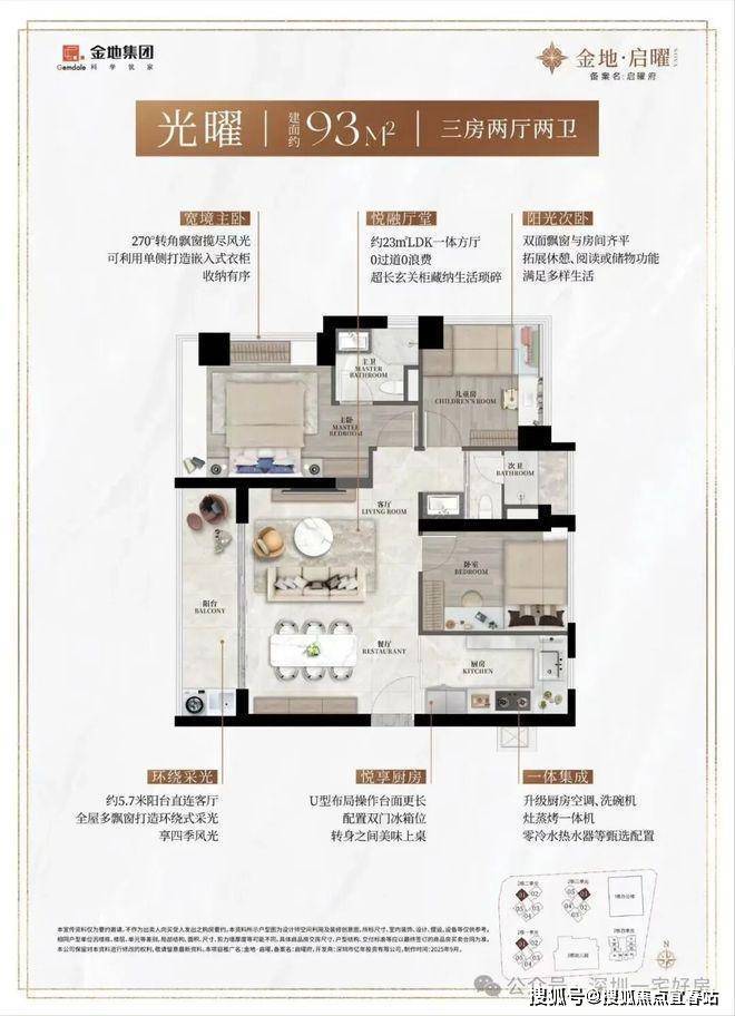 主卧+次卧均带270°转角飘窗,视野与采光再升级