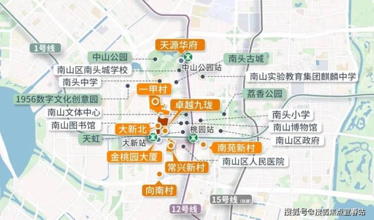 地铁1号线大新站、桃园站双地铁口物业,2站前海/高新园、4站宝中/后海、6站超总/海上世界。