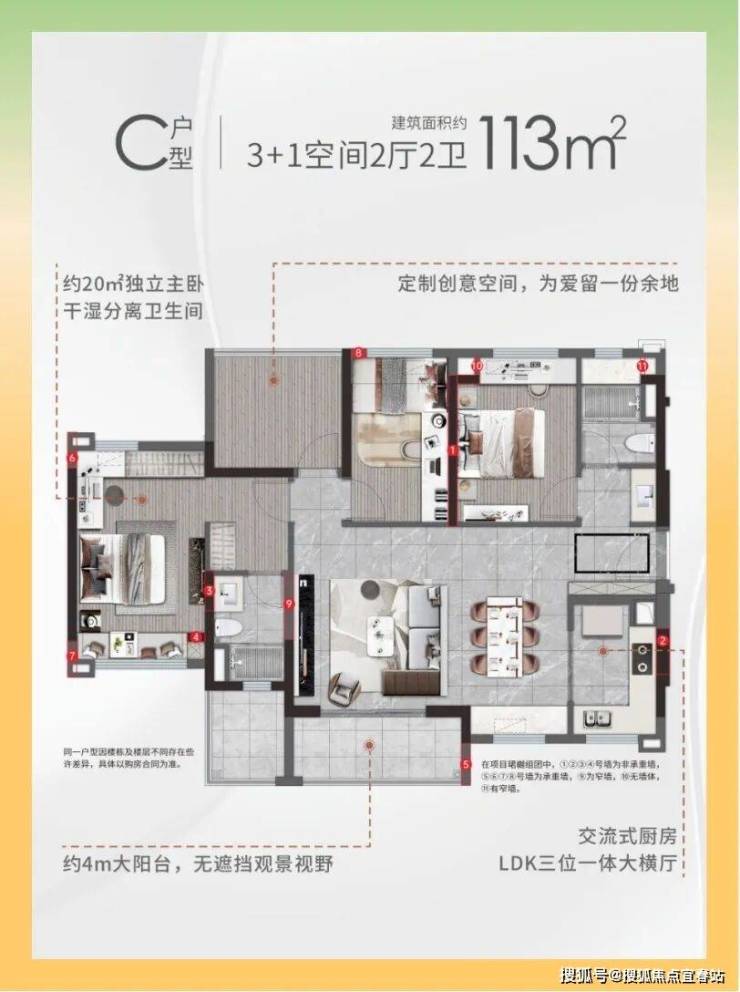 建面约113㎡户型,则是拥有大横厅的设计,整个空间拥有IMAX级采光!