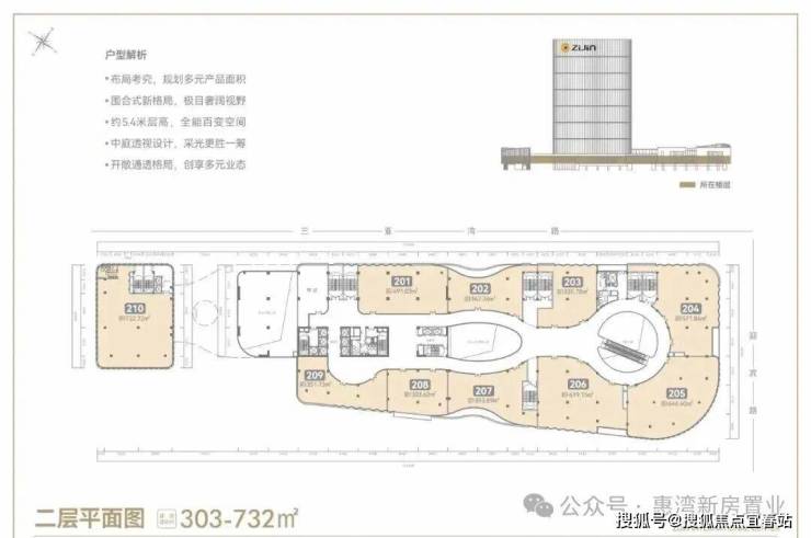 建面约303-732㎡滨海创意空间,约4.5-5.4米阔绰层高,格局方正通透,可根据需求自由创享。建面约375-1619㎡ 云端总部办公,约4.2米奢阔层高,约8.4米柱间距,180°全海景视野。